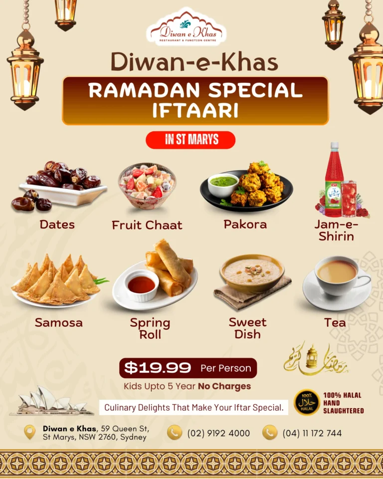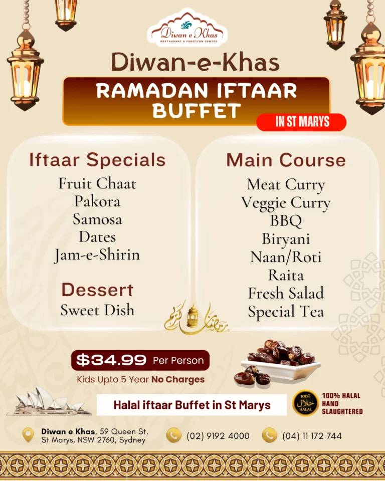 Halal Iftaar Buffet & Special Iftaari in St Marys, Sydney Celebrate Ramadan with authentic halal flavours, warm hospitality, and a peaceful dining experience.